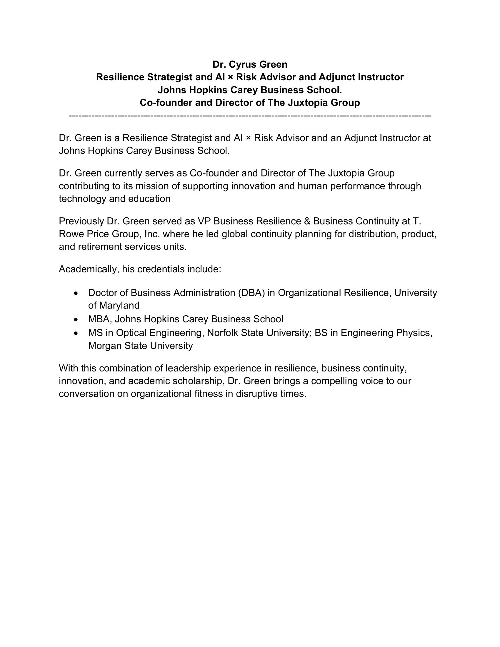Resilience Strategist | AI Risk Advisor | Adjunct Instructor at Johns Hopkins